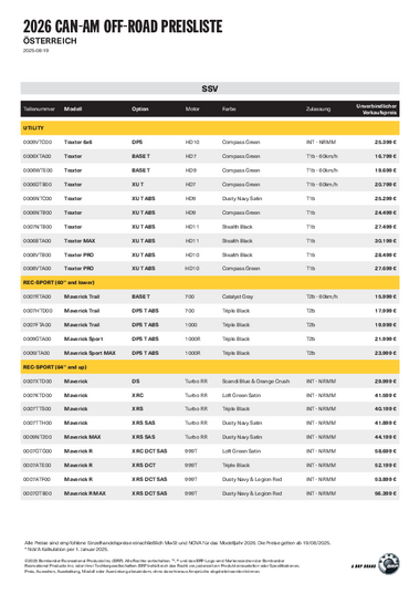 Can-Am SSV Preisliste 2026